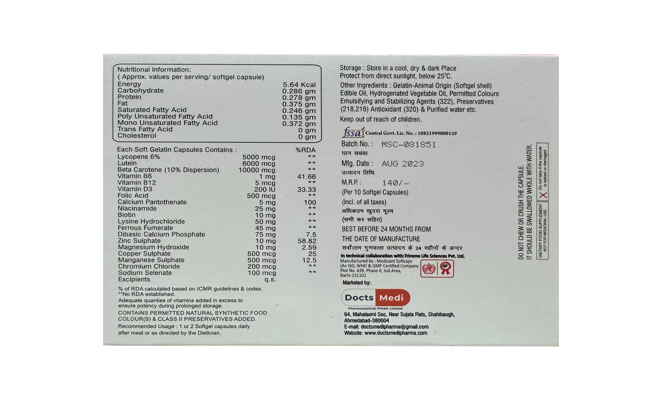 Lycopene, Lutein, Beta Carotene, Vitamins, Minerals Softgel Capsules